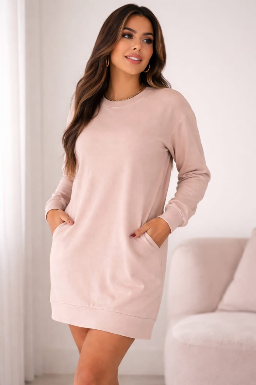 Conforto e praticidade em uma peça versátil e cheia de estilo. Esse vestido em moletinho possui modelagem moderna, punhos nas mangas e na barra, além de dois bolsos funcion ais que trazem ainda mais praticidade para o dia a dia.